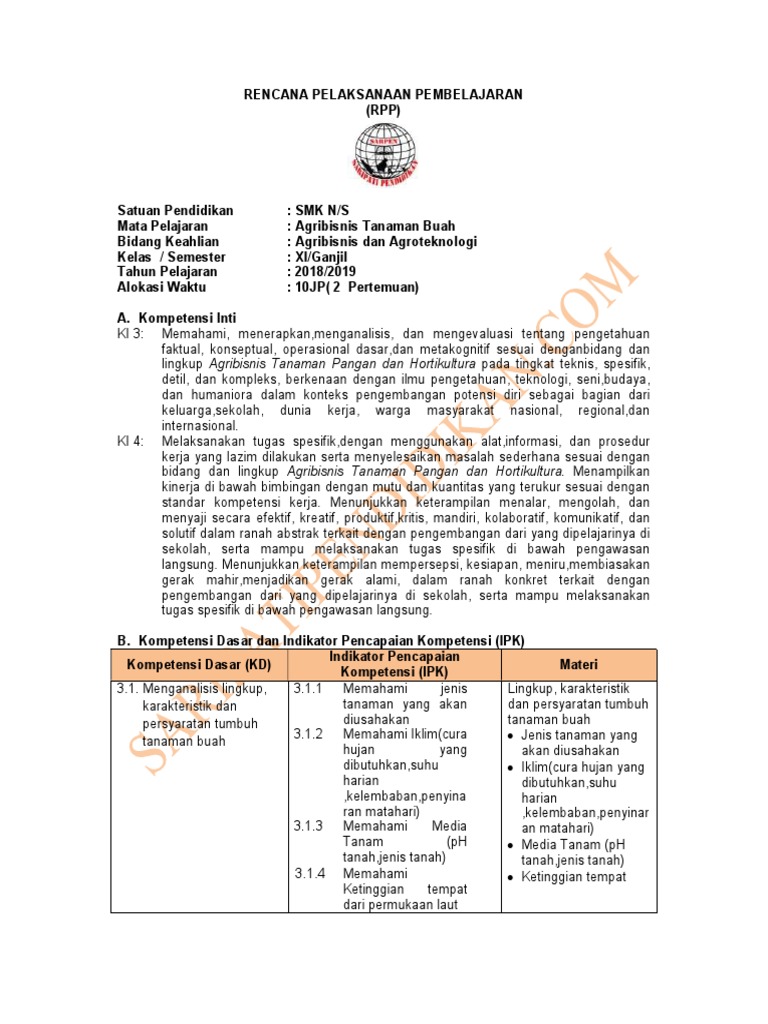 Download Rpp Mata Pelajaran Agribisnis Tanaman Buah Smk Kelas Xi Xii Kurikulum 2013 Revisi 2017 2018 Semester Ganjil Dan Genap Rpp 1 Lembar Download Rpp Smk Kurikulum 2013 Revisi 2017 2018 2019 2020