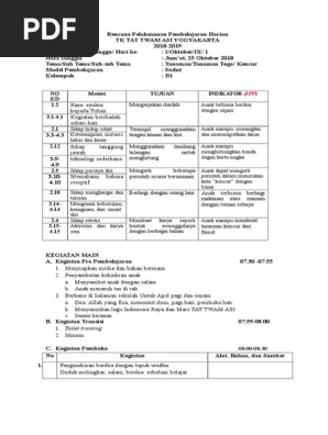 Contoh Rkh Rpph Paud Tema Diri Sendiri Tubuhku K13 Pdf Download Gratis