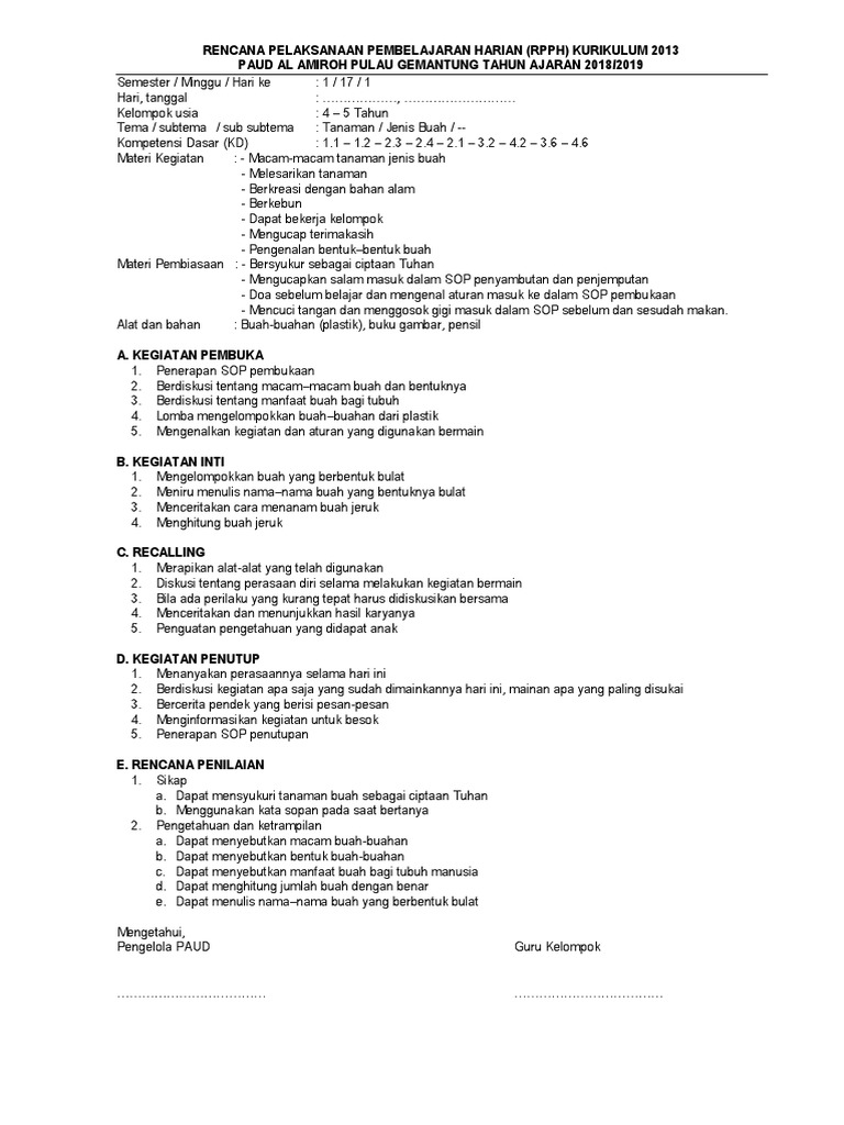 Pdf Rkh Rpph Tk Paud Klp A Tema Tanaman Subtema Aneka Buah Nandang Suharjo And Berkas Paud Academia Edu