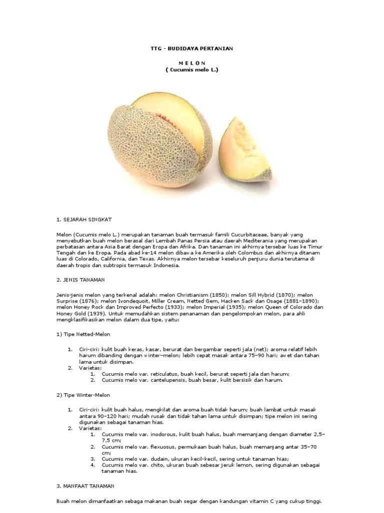 Klasifikasi Dan Morfologi Melon Buku Teori