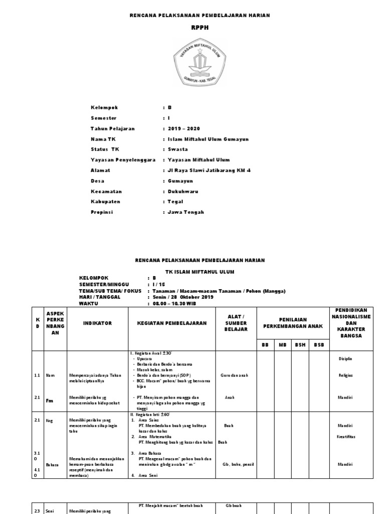 Pdf Rkh Rpph Tk Paud Klp A Tema Tanaman Subtema Aneka Buah Nandang Suharjo And Berkas Paud Academia Edu