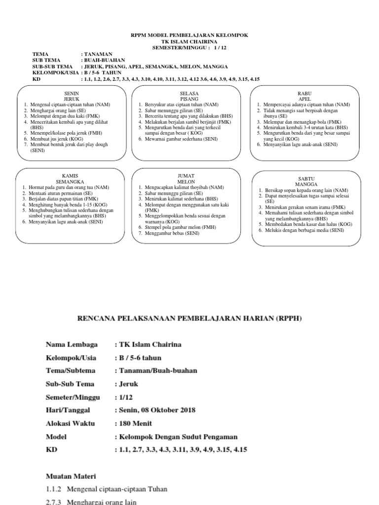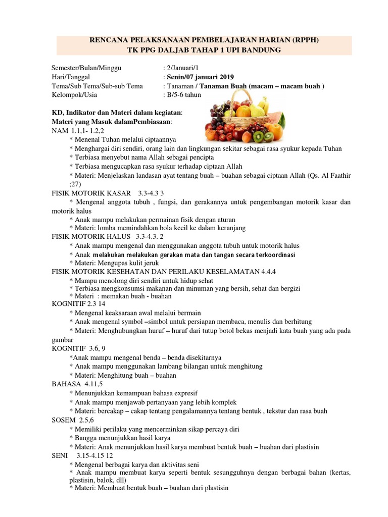 Pdf Rkh Rpph Tk Paud Klp A Tema Tanaman Subtema Aneka Buah Nandang Suharjo And Berkas Paud Academia Edu