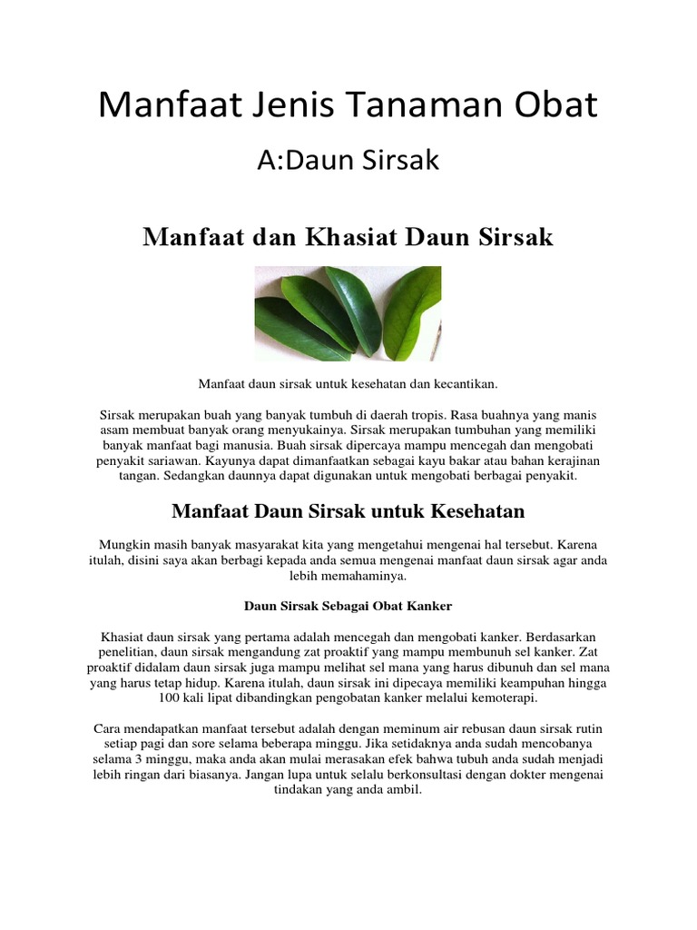 Manfaat Jenis Tanaman Obat Docx
